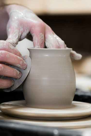 In einer kleinen Gruppe von sechs Kurs-Teilnehmenden erhältst du einen detaillierten Einblick und erlernst das Töpfern auf der elektrischen Drehscheibe: Gemeinsam durchlaufen wir den gesamten Prozess. Angefangen mit einem Klumpen Ton, über das Kneten, das Zentrieren, das Hochziehen, das Ausformen, das Abdrehen, den Rohbrand, das Glasieren und den Glasurbrand.